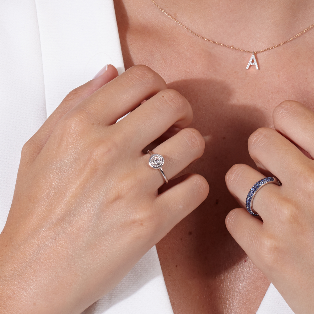 Anillo de la Colección Bubbles de oro blanco de 18 quilates con 7 diamantes talla brillante de 0’81 quilates by Elena Carrera