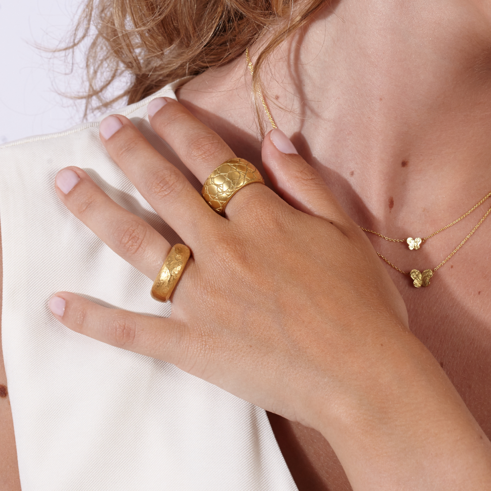 Sortija de la colección Texturas en oro amarillo y textura coco by Elena Carrera