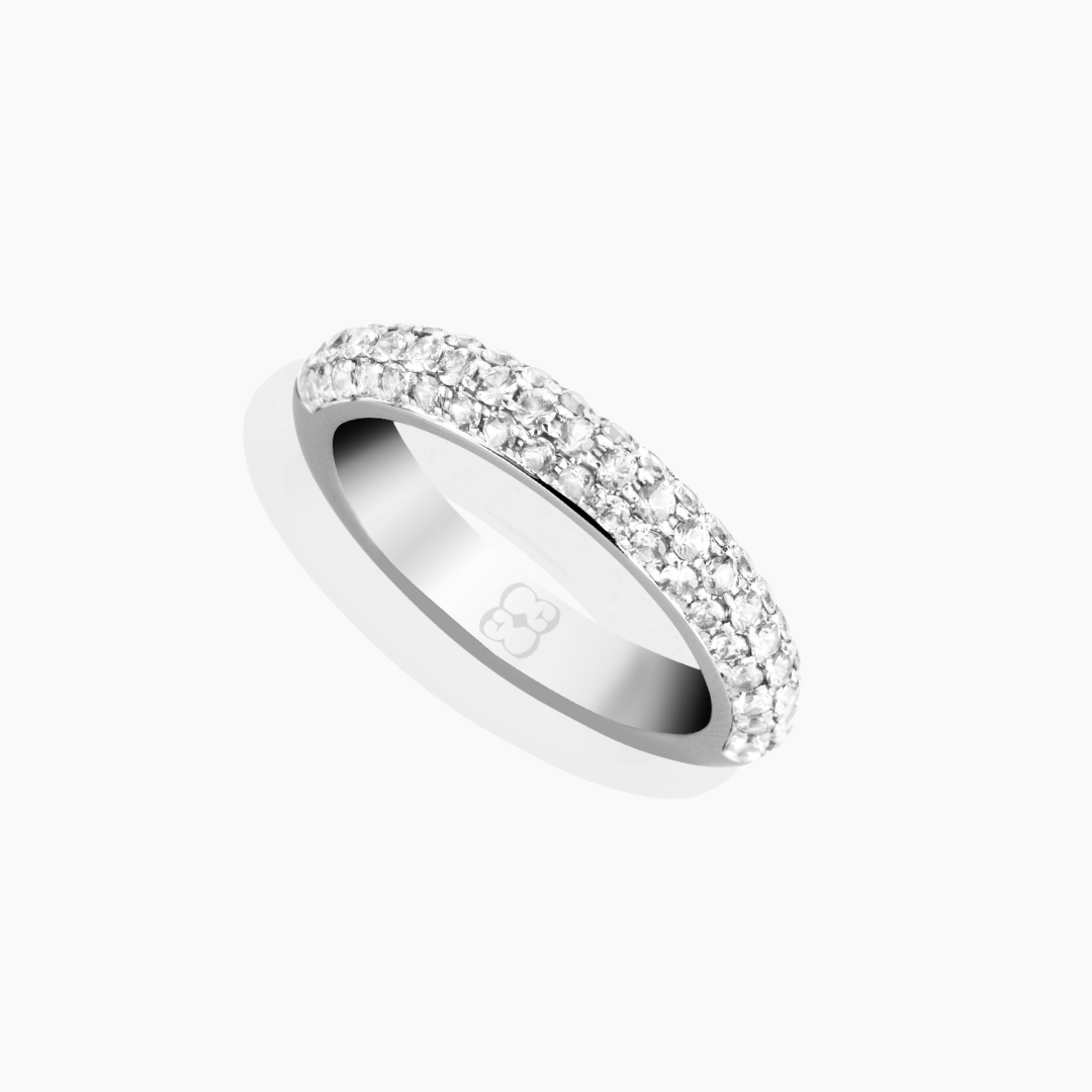 Sortija media alianza colección Texturas, realizada en oro blanco de 18 quilates (750 milésimas), con diamantes blancos naturales talla brillante.