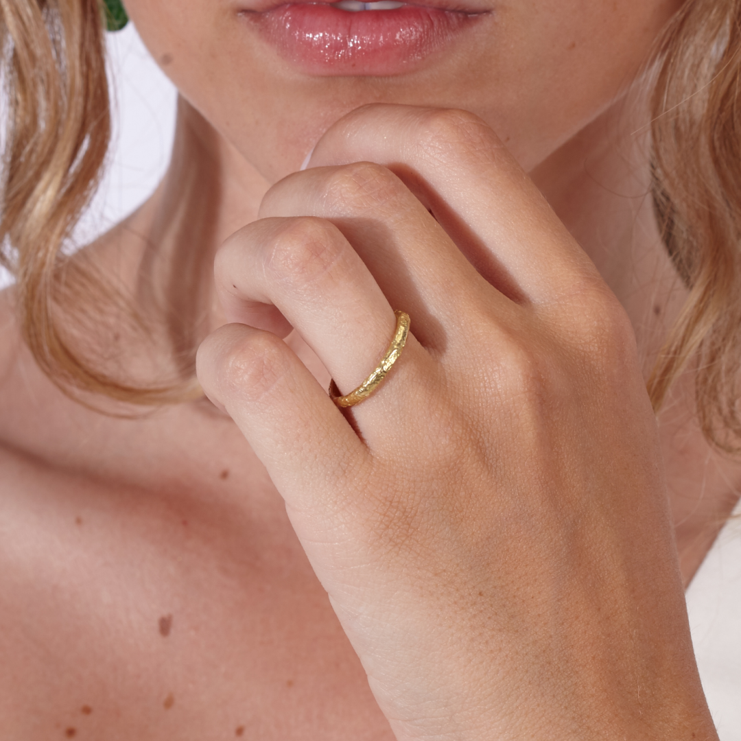 Alianza Elena Carrera, colección Texturas en oro de 18 quilates (750 milésimas) con acabado arena y un ancho de 2 milímetros BY ELENA CARRERA